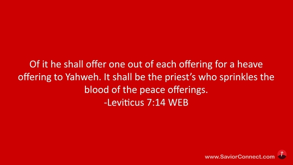 Of it he shall offer one out of each offering for a heave offering to Yahweh. It shall be the priest’s who sprinkles the blood of the peace offerings. -Leviticus 7:14 WEB