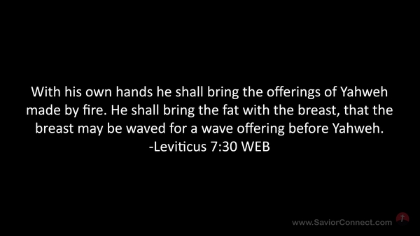 With his own hands he shall bring the offerings of Yahweh made by fire. He shall bring the fat with the breast, that the breast may be waved for a wave offering before Yahweh. -Leviticus 7:30 WEB
