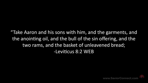 “Take Aaron and his sons with him, and the garments, and the anointing oil, and the bull of the sin offering, and the two rams, and the basket of unleavened bread; -Leviticus 8:2 WEB