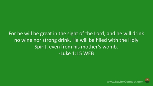 For he will be great in the sight of the Lord, and he will drink no wine nor strong drink. He will be filled with the Holy Spirit, even from his mother’s womb. -Luke 1:15 WEB