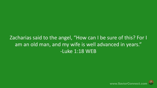 Zacharias said to the angel, “How can I be sure of this? For I am an old man, and my wife is well advanced in years.” -Luke 1:18 WEB