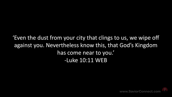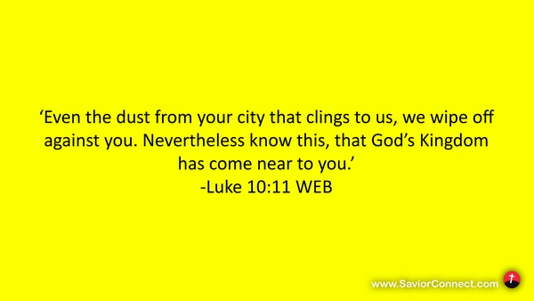 'Even the dust from your city that clings to us, we wipe off against you. Nevertheless know this, that God’s Kingdom has come near to you.’ -Luke 10:11 WEB