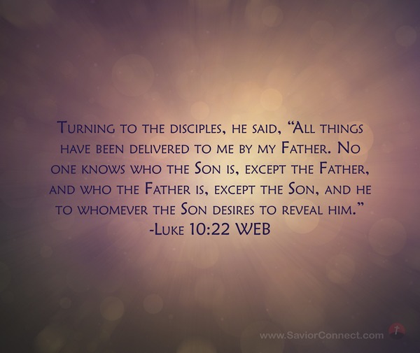 Turning to the disciples, he said, “All things have been delivered to me by my Father. No one knows who the Son is, except the Father, and who the Father is, except the Son, and he to whomever the Son desires to reveal him.” -Luke 10:22 WEB