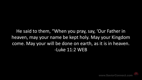 He said to them, “When you pray, say, 'Our Father in heaven, may your name be kept holy. May your Kingdom come. May your will be done on earth, as it is in heaven. -Luke 11:2 WEB