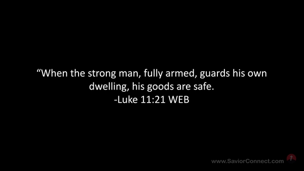 “When the strong man, fully armed, guards his own dwelling, his goods are safe. -Luke 11:21 WEB