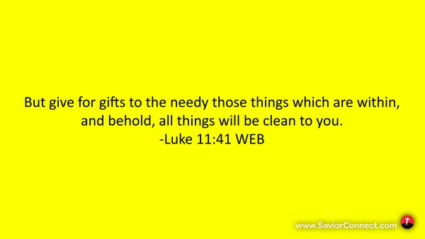 But give for gifts to the needy those things which are within, and behold, all things will be clean to you. -Luke 11:41 WEB