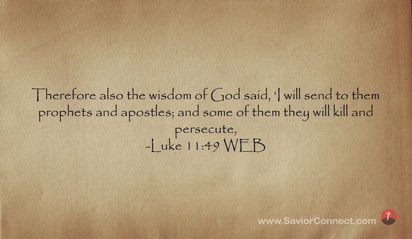 Therefore also the wisdom of God said, 'I will send to them prophets and apostles; and some of them they will kill and persecute, -Luke 11:49 WEB