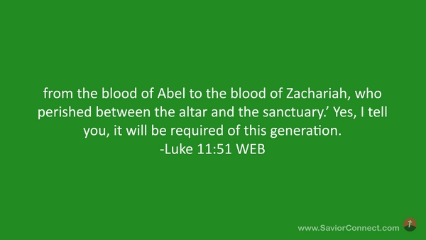 from the blood of Abel to the blood of Zachariah, who perished between the altar and the sanctuary.’ Yes, I tell you, it will be required of this generation. -Luke 11:51 WEB