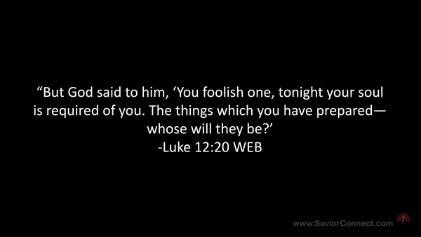 “But God said to him, 'You foolish one, tonight your soul is required of you. The things which you have prepared—whose will they be?’ -Luke 12:20 WEB