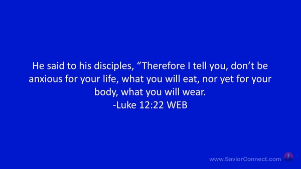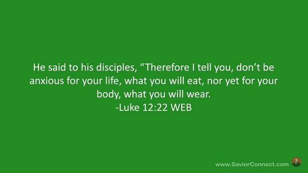 He said to his disciples, “Therefore I tell you, don’t be anxious for your life, what you will eat, nor yet for your body, what you will wear. -Luke 12:22 WEB