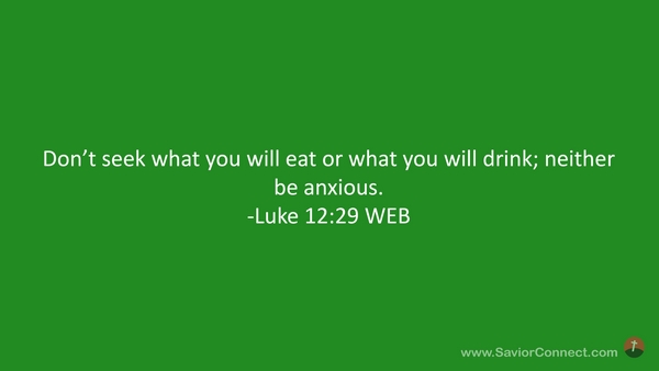 Don’t seek what you will eat or what you will drink; neither be anxious. -Luke 12:29 WEB