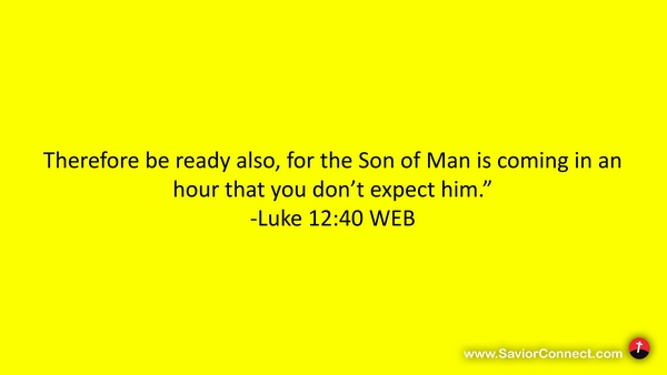 Therefore be ready also, for the Son of Man is coming in an hour that you don’t expect him.” -Luke 12:40 WEB