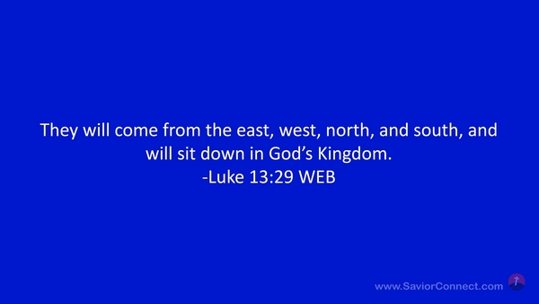 They will come from the east, west, north, and south, and will sit down in God’s Kingdom. -Luke 13:29 WEB