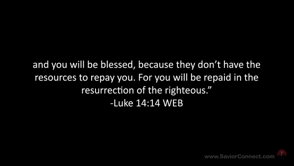 and you will be blessed, because they don’t have the resources to repay you. For you will be repaid in the resurrection of the righteous.” -Luke 14:14 WEB