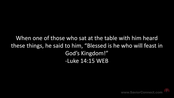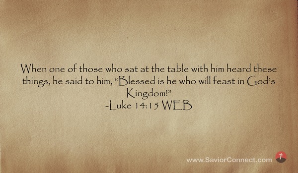 When one of those who sat at the table with him heard these things, he said to him, “Blessed is he who will feast in God’s Kingdom!” -Luke 14:15 WEB