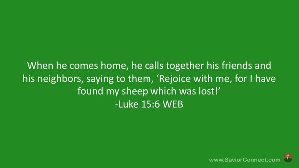 When he comes home, he calls together his friends and his neighbors, saying to them, 'Rejoice with me, for I have found my sheep which was lost!’ -Luke 15:6 WEB