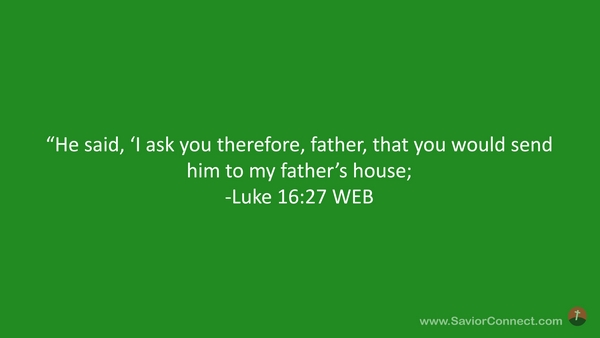 “He said, 'I ask you therefore, father, that you would send him to my father’s house; -Luke 16:27 WEB
