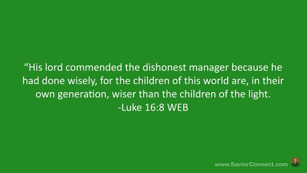 “His lord commended the dishonest manager because he had done wisely, for the children of this world are, in their own generation, wiser than the children of the light. -Luke 16:8 WEB