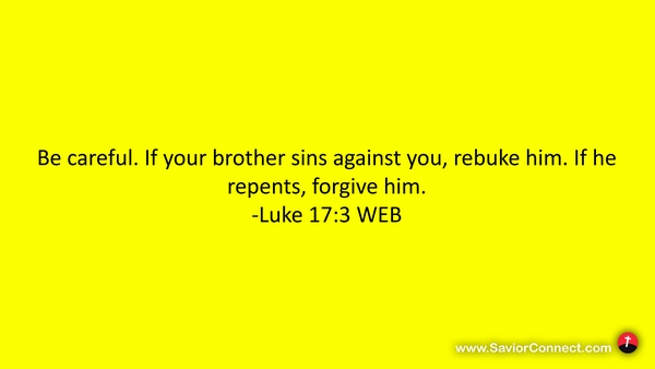 Be careful. If your brother sins against you, rebuke him. If he repents, forgive him. -Luke 17:3 WEB