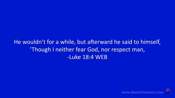 He wouldn’t for a while, but afterward he said to himself, 'Though I neither fear God, nor respect man, -Luke 18:4 WEB