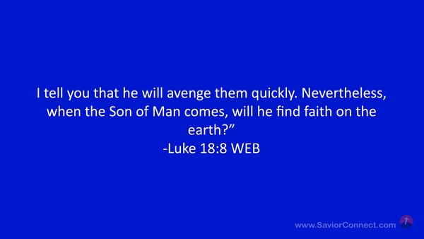 I tell you that he will avenge them quickly. Nevertheless, when the Son of Man comes, will he find faith on the earth?” -Luke 18:8 WEB