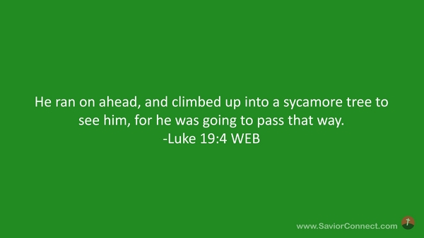 He ran on ahead, and climbed up into a sycamore tree to see him, for he was going to pass that way. -Luke 19:4 WEB
