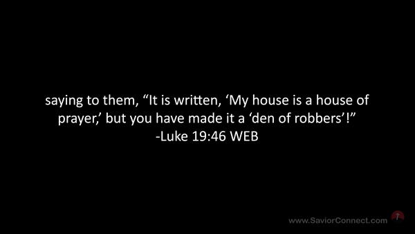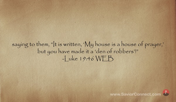 saying to them, “It is written, 'My house is a house of prayer,’ but you have made it a 'den of robbers’!” -Luke 19:46 WEB