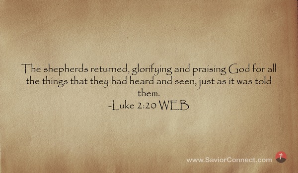 The shepherds returned, glorifying and praising God for all the things that they had heard and seen, just as it was told them. -Luke 2:20 WEB