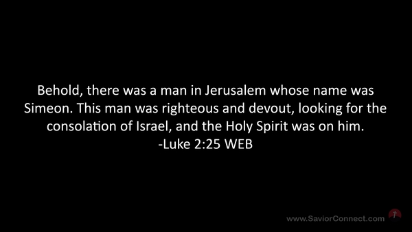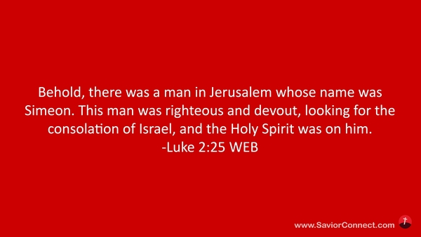 Behold, there was a man in Jerusalem whose name was Simeon. This man was righteous and devout, looking for the consolation of Israel, and the Holy Spirit was on him. -Luke 2:25 WEB