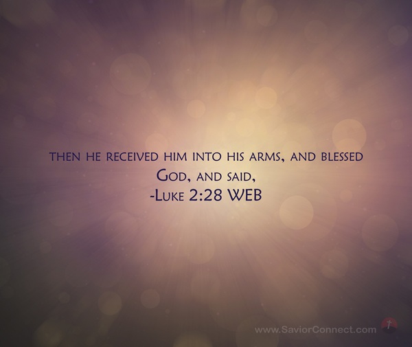 then he received him into his arms, and blessed God, and said, -Luke 2:28 WEB