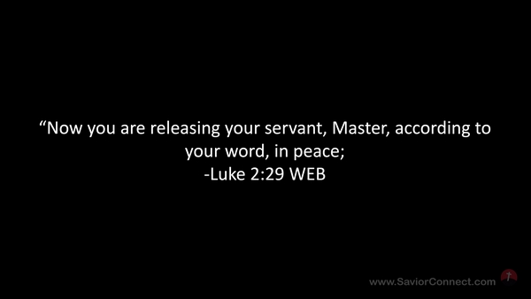 “Now you are releasing your servant, Master, according to your word, in peace; -Luke 2:29 WEB