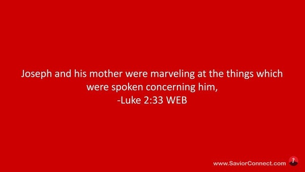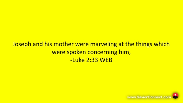 Joseph and his mother were marveling at the things which were spoken concerning him, -Luke 2:33 WEB