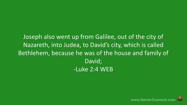 Joseph also went up from Galilee, out of the city of Nazareth, into Judea, to David’s city, which is called Bethlehem, because he was of the house and family of David; -Luke 2:4 WEB