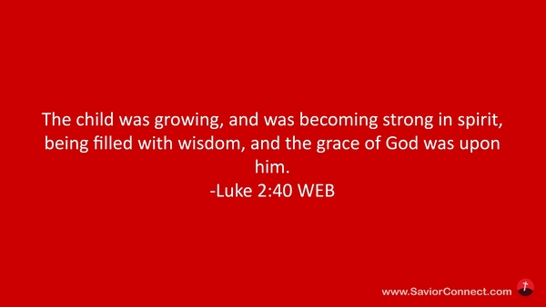 The child was growing, and was becoming strong in spirit, being filled with wisdom, and the grace of God was upon him. -Luke 2:40 WEB