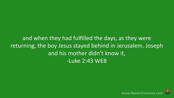 and when they had fulfilled the days, as they were returning, the boy Jesus stayed behind in Jerusalem. Joseph and his mother didn’t know it, -Luke 2:43 WEB
