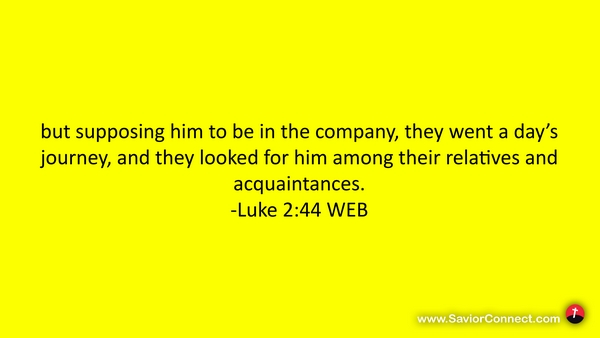 but supposing him to be in the company, they went a day’s journey, and they looked for him among their relatives and acquaintances. -Luke 2:44 WEB