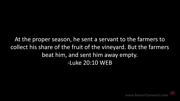 At the proper season, he sent a servant to the farmers to collect his share of the fruit of the vineyard. But the farmers beat him, and sent him away empty. -Luke 20:10 WEB