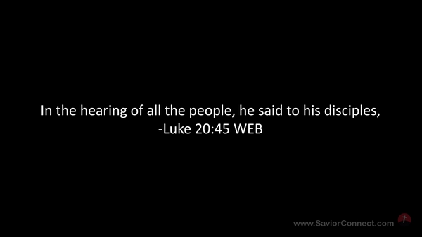 In the hearing of all the people, he said to his disciples, -Luke 20:45 WEB