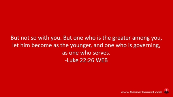 But not so with you. But one who is the greater among you, let him become as the younger, and one who is governing, as one who serves. -Luke 22:26 WEB