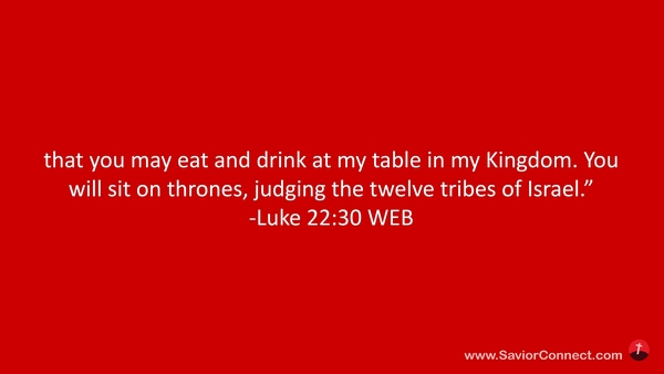 that you may eat and drink at my table in my Kingdom. You will sit on thrones, judging the twelve tribes of Israel.” -Luke 22:30 WEB