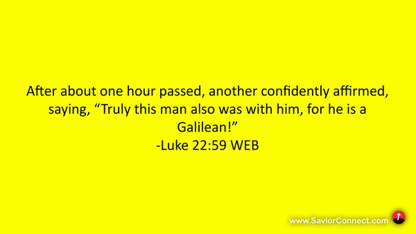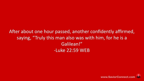 After about one hour passed, another confidently affirmed, saying, “Truly this man also was with him, for he is a Galilean!” -Luke 22:59 WEB