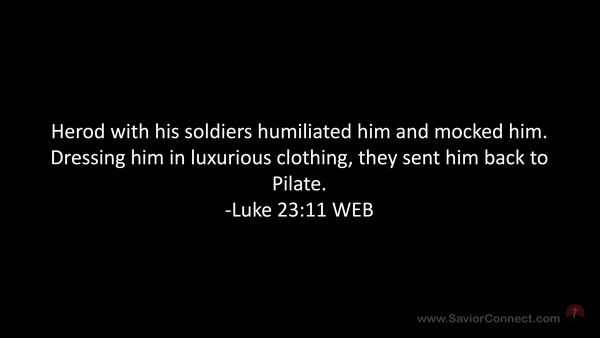 Herod with his soldiers humiliated him and mocked him. Dressing him in luxurious clothing, they sent him back to Pilate. -Luke 23:11 WEB