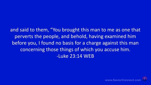 and said to them, “You brought this man to me as one that perverts the people, and behold, having examined him before you, I found no basis for a charge against this man concerning those things of which you accuse him. -Luke 23:14 WEB