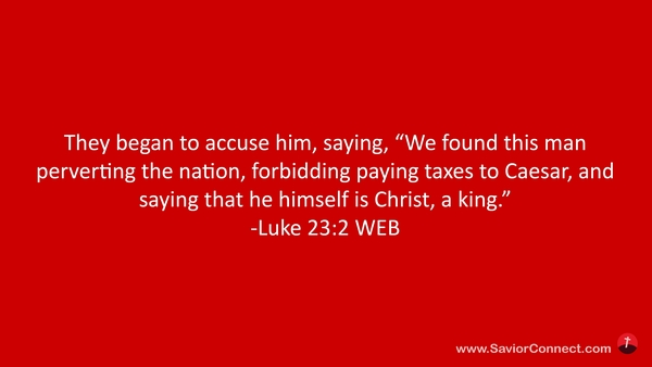 They began to accuse him, saying, “We found this man perverting the nation, forbidding paying taxes to Caesar, and saying that he himself is Christ, a king.” -Luke 23:2 WEB