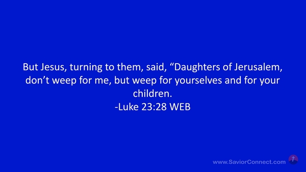 But Jesus, turning to them, said, “Daughters of Jerusalem, don’t weep for me, but weep for yourselves and for your children. -Luke 23:28 WEB