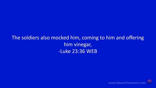 The soldiers also mocked him, coming to him and offering him vinegar, -Luke 23:36 WEB