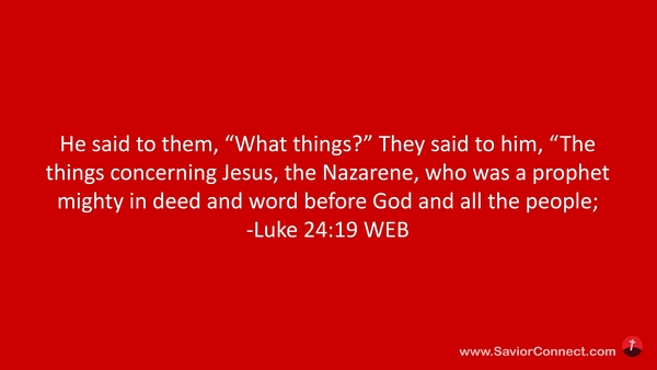 He said to them, “What things?” They said to him, “The things concerning Jesus, the Nazarene, who was a prophet mighty in deed and word before God and all the people; -Luke 24:19 WEB