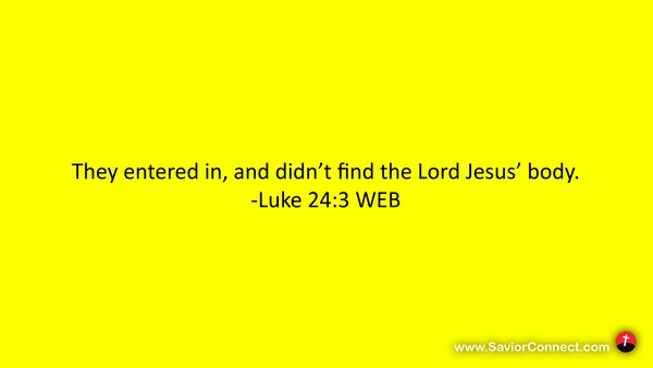 They entered in, and didn’t find the Lord Jesus’ body. -Luke 24:3 WEB