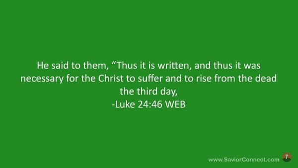 He said to them, “Thus it is written, and thus it was necessary for the Christ to suffer and to rise from the dead the third day, -Luke 24:46 WEB