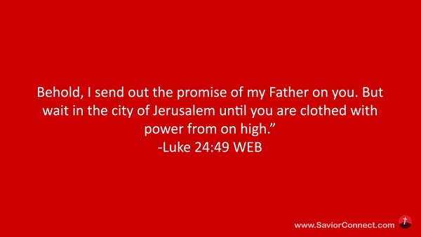 Behold, I send out the promise of my Father on you. But wait in the city of Jerusalem until you are clothed with power from on high.” -Luke 24:49 WEB